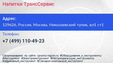 Напитки ТрансСервис по адресу 129626, Россия, Москва, Николаевский тупик, вл1 ст1 в дальнейшем Организация, размещена в следующих категориях: