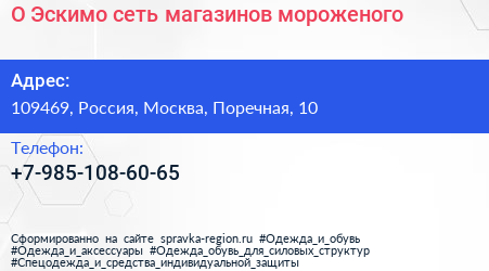 О! Эскимо, сеть магазинов мороженого по адресу 109469, Россия, Москва, Поречная, 10 в дальнейшем Организация, размещена в следующих категориях: