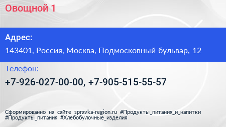 Овощной №1 по адресу 143401, Россия, Москва, Подмосковный бульвар, 12 в дальнейшем Организация, размещена в следующих категориях: