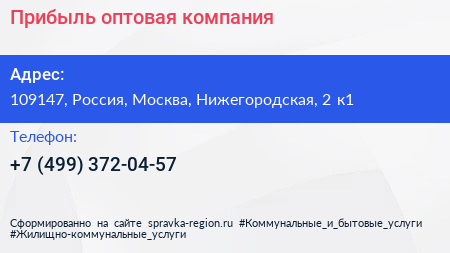 Прибыль, оптовая компания по адресу 109147, Россия, Москва, Нижегородская, 2 к1 в дальнейшем Организация, размещена в следующих категориях: