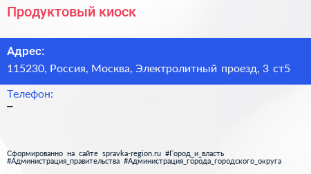 Продуктовый киоск по адресу 115230, Россия, Москва, Электролитный проезд, 3 ст5 в дальнейшем Организация, размещена в следующих категориях: