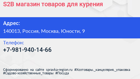 S2B, магазин товаров для курения по адресу 140013, Россия, Москва, Юности, 9 в дальнейшем Организация, размещена в следующих категориях: