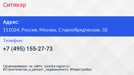 Ситикар по адресу 111024, Россия, Москва, Старообрядческая, 32 в дальнейшем Организация, размещена в следующих категориях:
