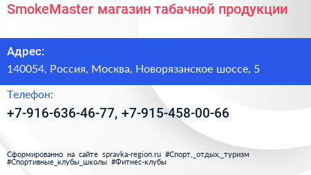 SmokeMaster, магазин табачной продукции по адресу 140054, Россия, Москва, Новорязанское шоссе, 5 в дальнейшем Организация, размещена в следующих категориях: