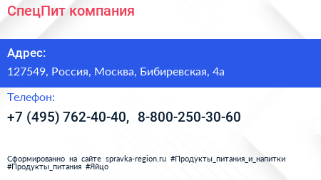 СпецПит, компания по адресу 127549, Россия, Москва, Бибиревская, 4а в дальнейшем Организация, размещена в следующих категориях: