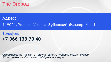 The Огород по адресу 119021, Россия, Москва, Зубовский бульвар, 4 ст1 в дальнейшем Организация, размещена в следующих категориях: