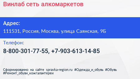 Винлаб, сеть алкомаркетов по адресу 111531, Россия, Москва, улица Саянская, 9Б в дальнейшем Организация, размещена в следующих категориях: