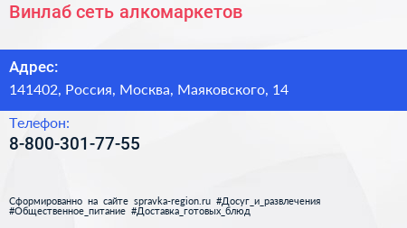 Винлаб, сеть алкомаркетов по адресу 141402, Россия, Москва, Маяковского, 14 в дальнейшем Организация, размещена в следующих категориях:
