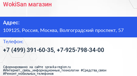 WokiSan, магазин по адресу 109125, Россия, Москва, Волгоградский проспект, 57 в дальнейшем Организация, размещена в следующих категориях: