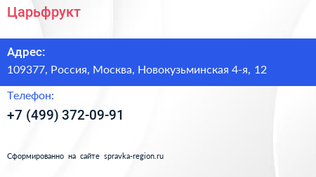 Царьфрукт по адресу 109377, Россия, Москва, Новокузьминская 4-я, 12 в дальнейшем Организация, размещена в следующих категориях: