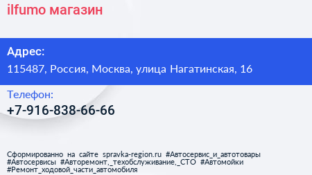 ilfumo, магазин по адресу 115487, Россия, Москва, улица Нагатинская, 16 в дальнейшем Организация, размещена в следующих категориях: