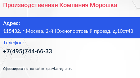 Производственная Компания «Морошка» по адресу 115432, г.Москва, 2-й Южнопортовый проезд, д.10ст48 в дальнейшем Организация, размещена в следующих категориях: