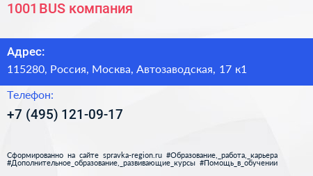 1001 BUS, компания по адресу 115280, Россия, Москва, Автозаводская, 17 к1 в дальнейшем Организация, размещена в следующих категориях: