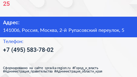 №25 по адресу 141006, Россия, Москва, 2-й Рупасовский переулок, 5 в дальнейшем Организация, размещена в следующих категориях: