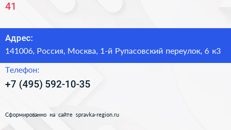 №41 по адресу 141006, Россия, Москва, 1-й Рупасовский переулок, 6 к3 в дальнейшем Организация, размещена в следующих категориях: