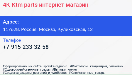 4К. Ktm. parts, интернет-магазин по адресу 117628, Россия, Москва, Куликовская, 12 в дальнейшем Организация, размещена в следующих категориях: