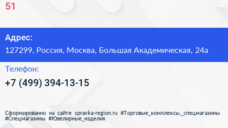 51 по адресу 127299, Россия, Москва, Большая Академическая, 24а в дальнейшем Организация, размещена в следующих категориях: