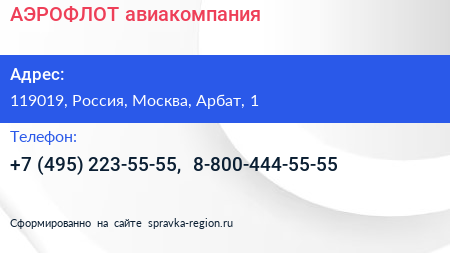 АЭРОФЛОТ, авиакомпания по адресу 119019, Россия, Москва, Арбат, 1 в дальнейшем Организация, размещена в следующих категориях: