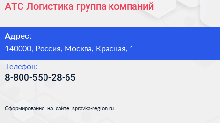 АТС Логистика, группа компаний по адресу 140000, Россия, Москва, Красная, 1 в дальнейшем Организация, размещена в следующих категориях: