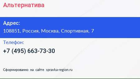 Альтернатива по адресу 108851, Россия, Москва, Спортивная, 7 в дальнейшем Организация, размещена в следующих категориях: