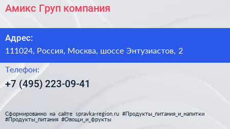 Амикс Груп, компания по адресу 111024, Россия, Москва, шоссе Энтузиастов, 2 в дальнейшем Организация, размещена в следующих категориях:
