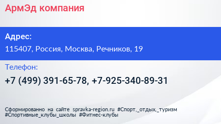 АрмЭд, компания по адресу 115407, Россия, Москва, Речников, 19 в дальнейшем Организация, размещена в следующих категориях: