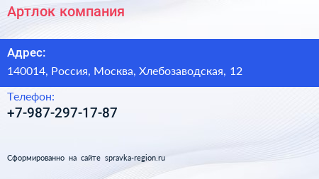 Артлок, компания по адресу 140014, Россия, Москва, Хлебозаводская, 12 в дальнейшем Организация, размещена в следующих категориях: