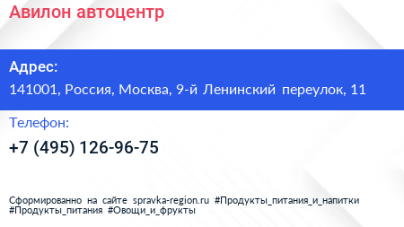 Авилон, автоцентр по адресу 141001, Россия, Москва, 9-й Ленинский переулок, 11 в дальнейшем Организация, размещена в следующих категориях:
