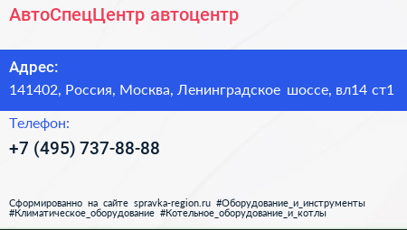 АвтоСпецЦентр, автоцентр по адресу 141402, Россия, Москва, Ленинградское шоссе, вл14 ст1 в дальнейшем Организация, размещена в следующих категориях:
