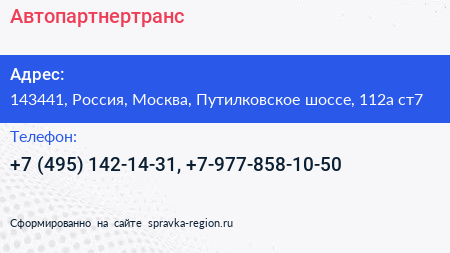 Автопартнертранс по адресу 143441, Россия, Москва, Путилковское шоссе, 112а ст7 в дальнейшем Организация, размещена в следующих категориях: