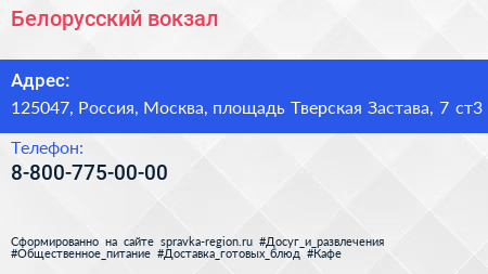Белорусский вокзал по адресу 125047, Россия, Москва, площадь Тверская Застава, 7 ст3 в дальнейшем Организация, размещена в следующих категориях: