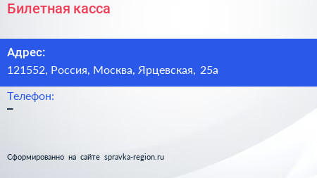 Билетная касса по адресу 121552, Россия, Москва, Ярцевская, 25а в дальнейшем Организация, размещена в следующих категориях: