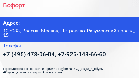 Бофорт по адресу 127083, Россия, Москва, Петровско-Разумовский проезд, 15 в дальнейшем Организация, размещена в следующих категориях: