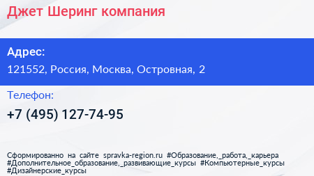 Джет Шеринг, компания по адресу 121552, Россия, Москва, Островная, 2 в дальнейшем Организация, размещена в следующих категориях: