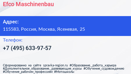 Efco Maschinenbau по адресу 115583, Россия, Москва, Ясеневая, 25 в дальнейшем Организация, размещена в следующих категориях: