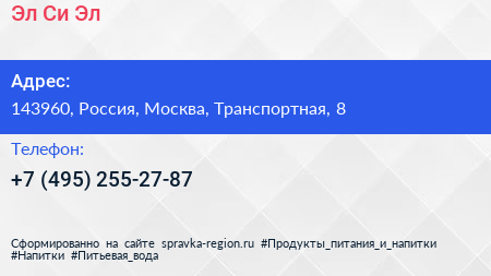 Эл Си Эл по адресу 143960, Россия, Москва, Транспортная, 8 в дальнейшем Организация, размещена в следующих категориях: