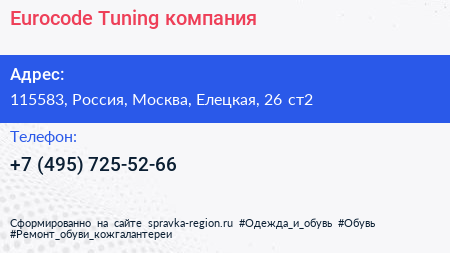 Eurocode Tuning, компания по адресу 115583, Россия, Москва, Елецкая, 26 ст2 в дальнейшем Организация, размещена в следующих категориях:
