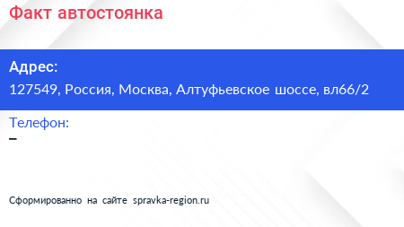 Факт, автостоянка по адресу 127549, Россия, Москва, Алтуфьевское шоссе, вл66/2 в дальнейшем Организация, размещена в следующих категориях: