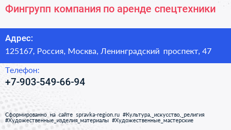 Фингрупп, компания по аренде спецтехники по адресу 125167, Россия, Москва, Ленинградский проспект, 47 в дальнейшем Организация, размещена в следующих категориях: