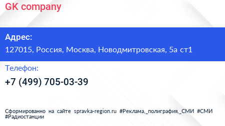 GK-company по адресу 127015, Россия, Москва, Новодмитровская, 5а ст1 в дальнейшем Организация, размещена в следующих категориях: