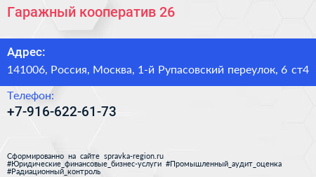 Гаражный кооператив №26 по адресу 141006, Россия, Москва, 1-й Рупасовский переулок, 6 ст4 в дальнейшем Организация, размещена в следующих категориях:
