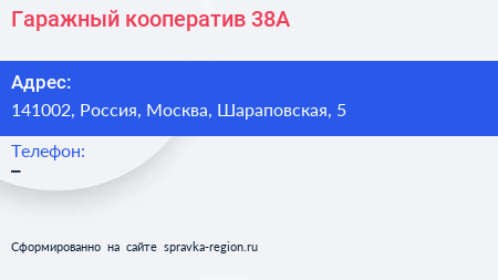 Гаражный кооператив №38А по адресу 141002, Россия, Москва, Шараповская, 5 в дальнейшем Организация, размещена в следующих категориях: