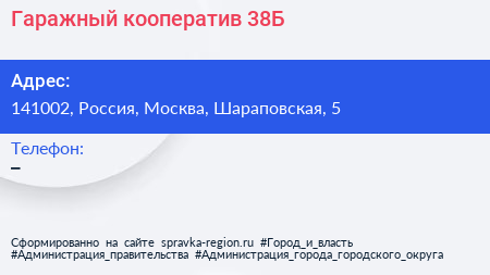 Гаражный кооператив №38Б по адресу 141002, Россия, Москва, Шараповская, 5 в дальнейшем Организация, размещена в следующих категориях: