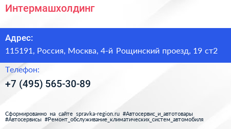 Интермашхолдинг по адресу 115191, Россия, Москва, 4-й Рощинский проезд, 19 ст2 в дальнейшем Организация, размещена в следующих категориях: