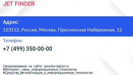 JET FINDER по адресу 123112, Россия, Москва, Пресненская Набережная, 12 в дальнейшем Организация, размещена в следующих категориях: