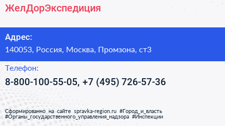 ЖелДорЭкспедиция по адресу 140053, Россия, Москва, Промзона, ст3 в дальнейшем Организация, размещена в следующих категориях:
