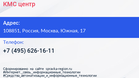 КМС центр по адресу 108851, Россия, Москва, Южная, 17 в дальнейшем Организация, размещена в следующих категориях: