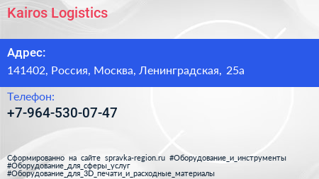 Kairos Logistics по адресу 141402, Россия, Москва, Ленинградская, 25а в дальнейшем Организация, размещена в следующих категориях: