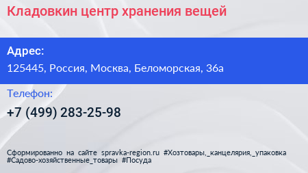 Кладовкин, центр хранения вещей по адресу 125445, Россия, Москва, Беломорская, 36а в дальнейшем Организация, размещена в следующих категориях:
