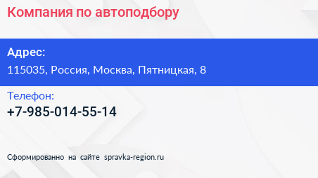 Компания по автоподбору по адресу 115035, Россия, Москва, Пятницкая, 8 в дальнейшем Организация, размещена в следующих категориях: